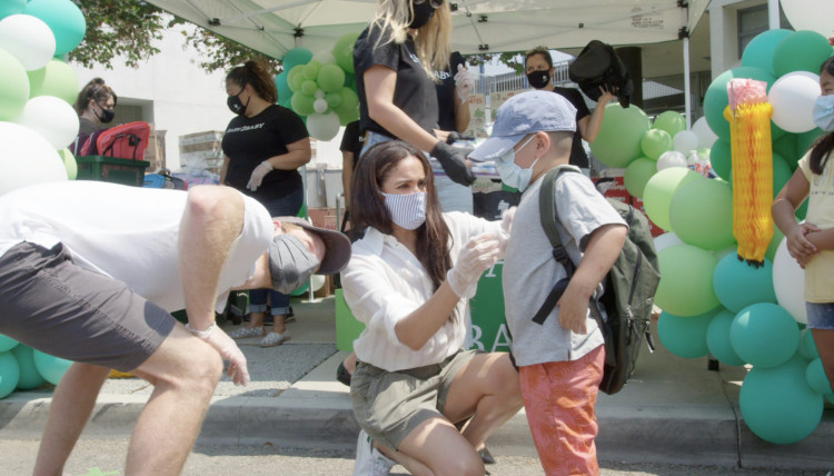 The charity event took place outside Know Elementary, in South Los Angeles. Most of the people who participated were, reportedly, "badly hit" by the economic crisis due to the pandemic.