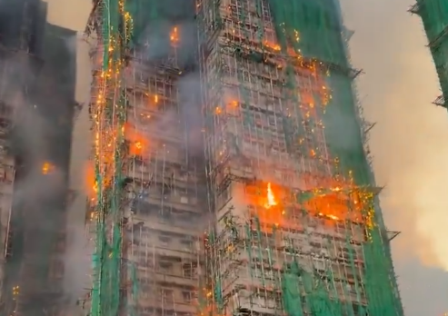 A catastrophic fire ripped through a cluster of high-rise residential towers in Hong Kong's Tai Po district on Wednesday, killing at least 14 people and injuring more than a dozen others as firefighters struggled to contain a blaze that intensified after nightfall. Authorities raised the incident to a No. 5 alarm-the city's highest severity rating-after flames spread across bamboo scaffolding and green construction netting encasing much of the Wang Fuk Court housing complex, home to nearly 2,000 apartments.